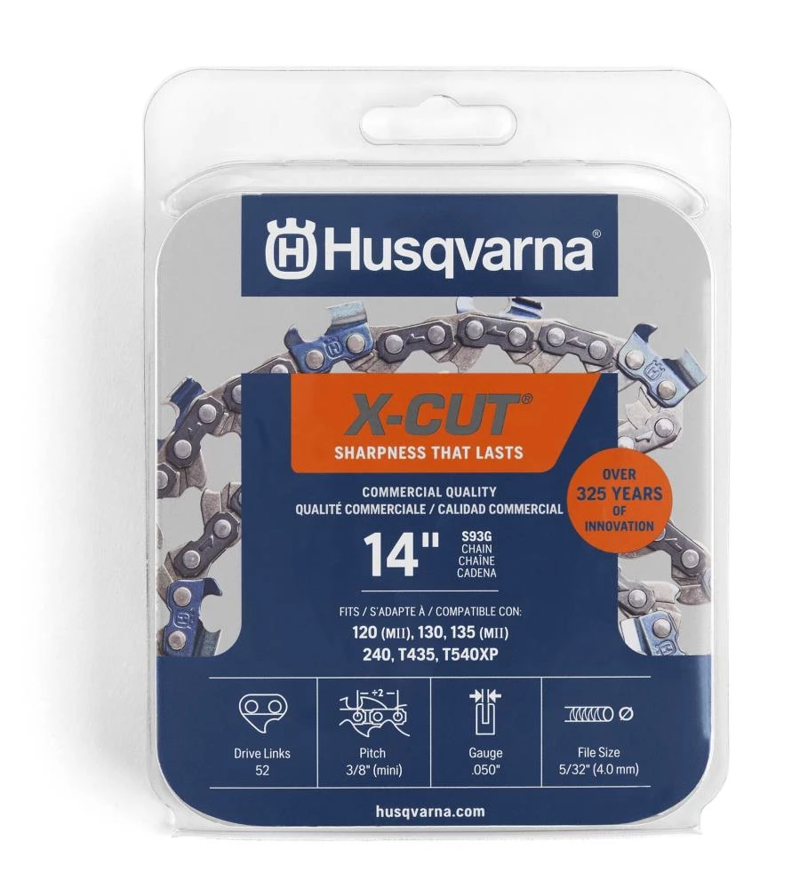 The new S93G X-Cut chain gives you excellent precision and performance in narrow spaces, making it perfect for arborists and tree care experts. The smooth operation, lasting sharpness and low kick back will generate high cutting efficiency and improve your maneuverability – and reduce the strain on your body.